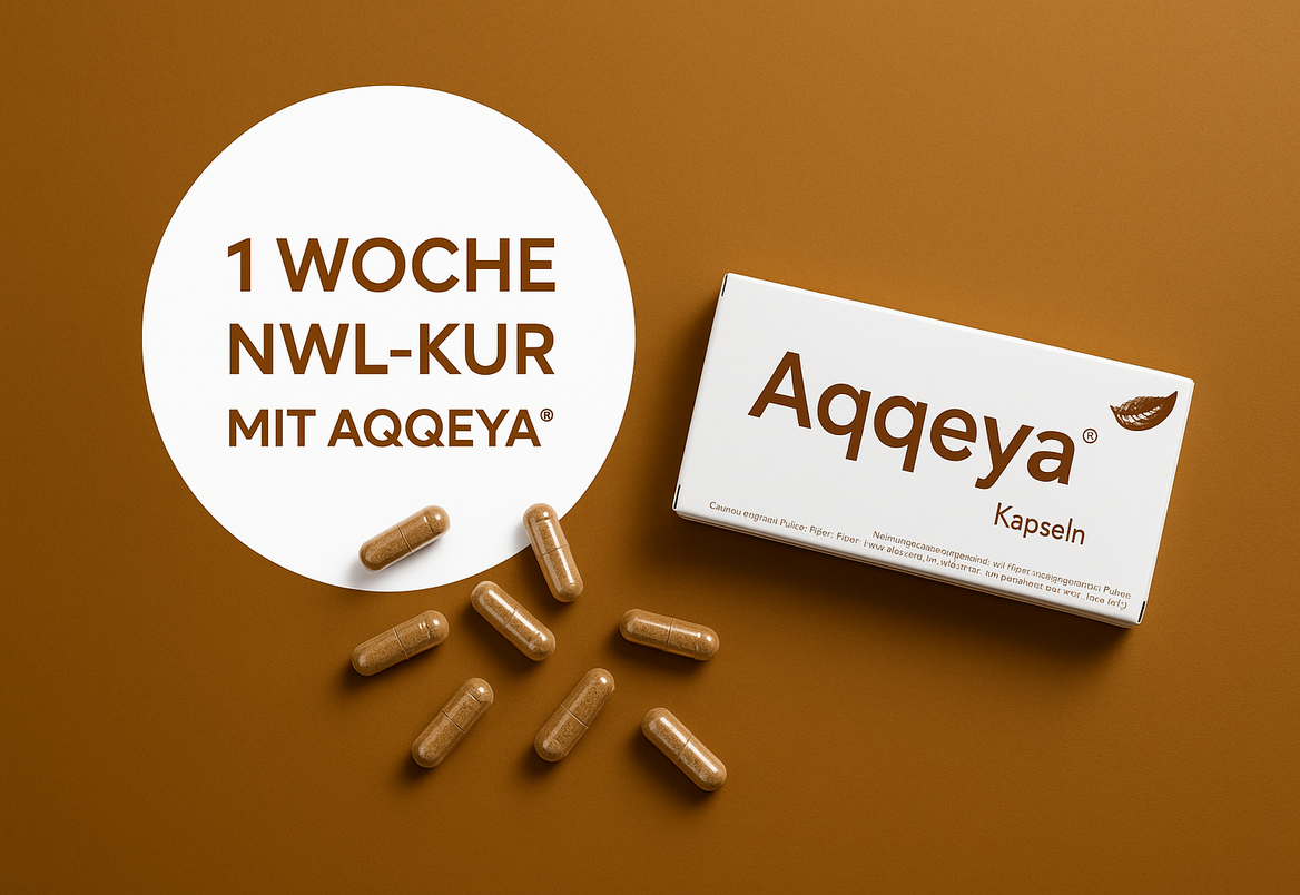 Eine Woche NWL-Kur mit AQQEYA® (Ihre Wochenpackung senden wir Ihnen zu) und Support per wöchentlicher Email von uns: pro Kurwoche € 111.-